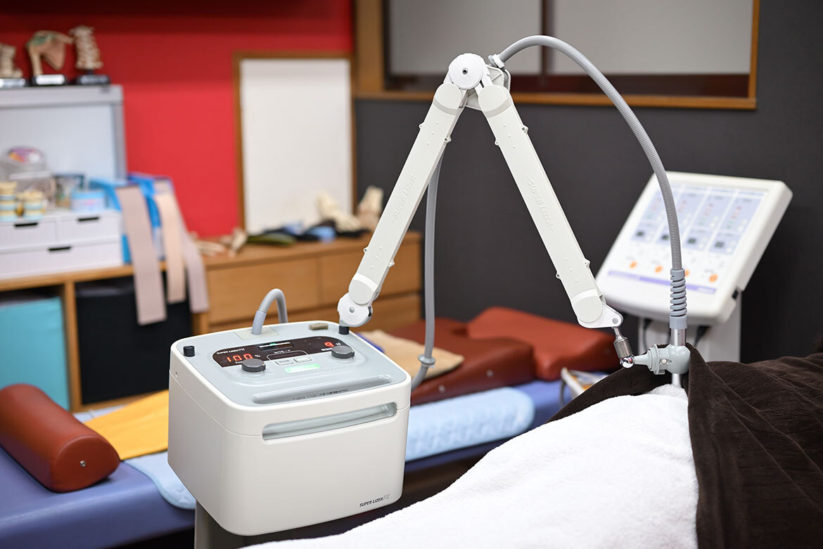 ペインクリニックでも使用されている近赤外線治療機器。表面的な痛みだけではなく、不調の原因となる深部にも照射できる。また、自律神経に働きかけ全身症状の改善などにも繋がります。